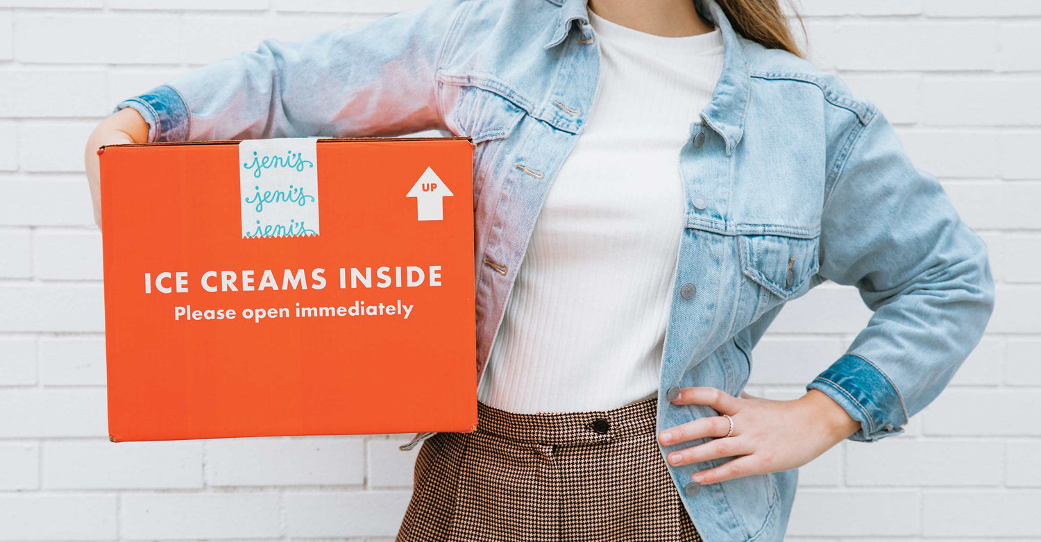 We pack our ice creams in an insulated box with enough dry ice to keep pints perfectly frozen (-109.3°F, to be exact) well into the evening of the delivery date. Frozen delivery is guaranteed!